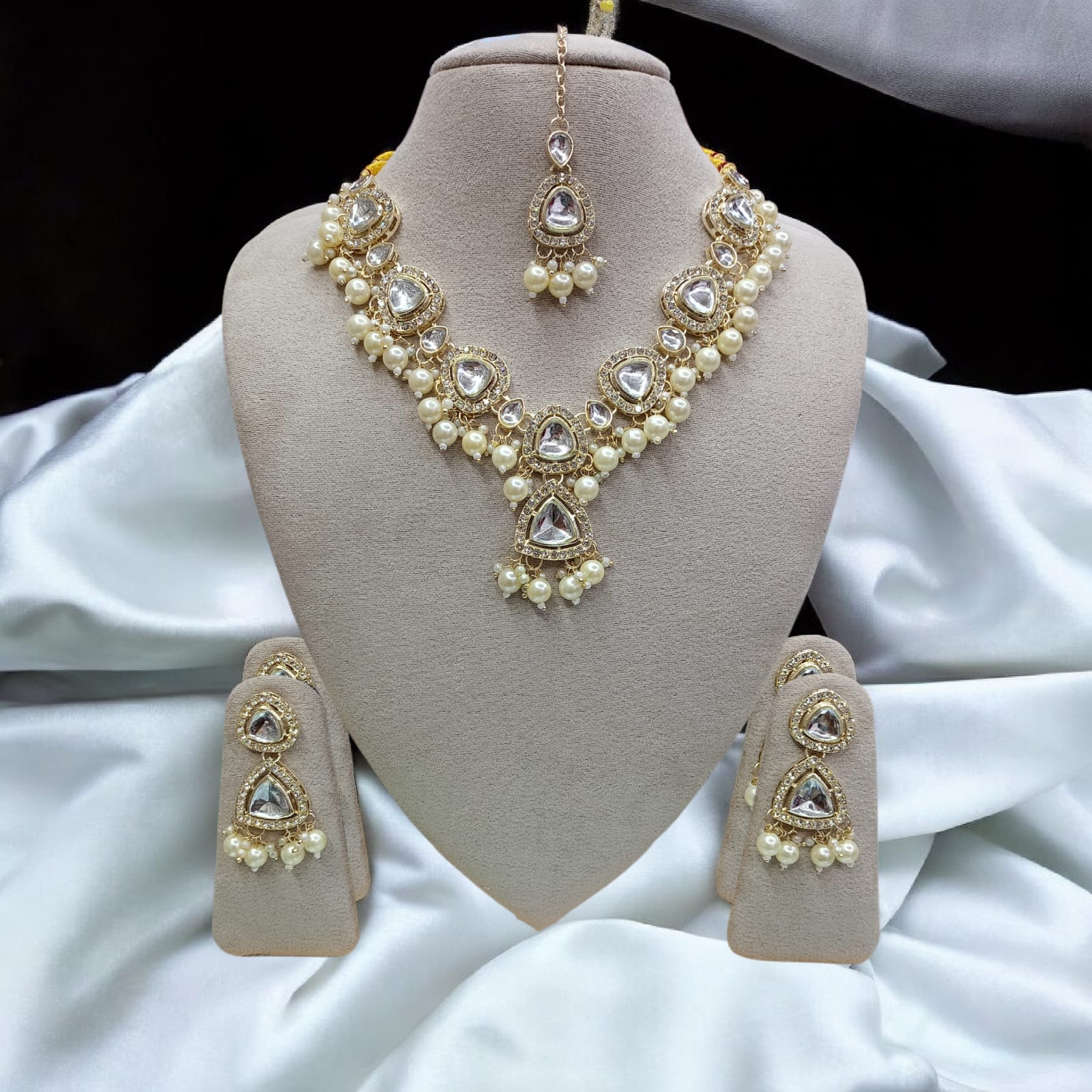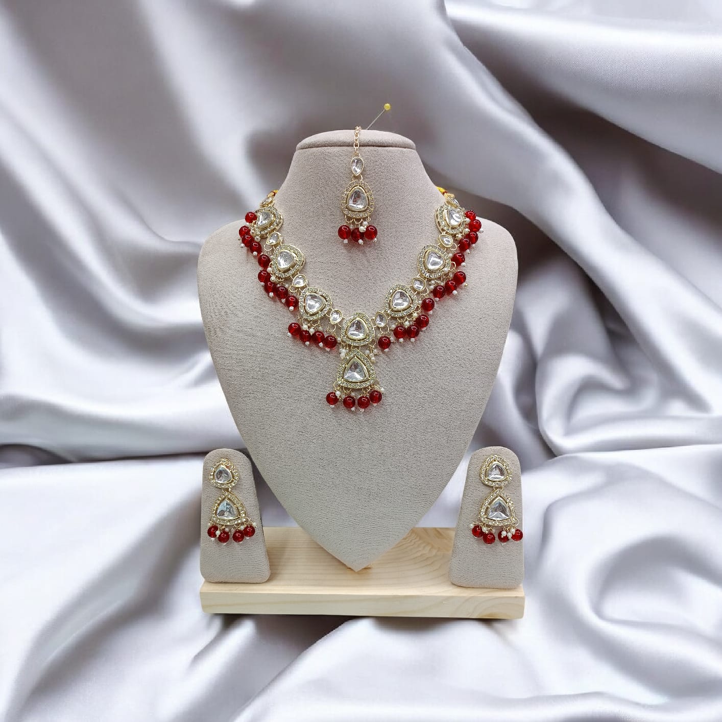 ✔️ সম্পূর্ণ সেট: নেকলেস + ম্যাচিং কানের দুল + টিকা